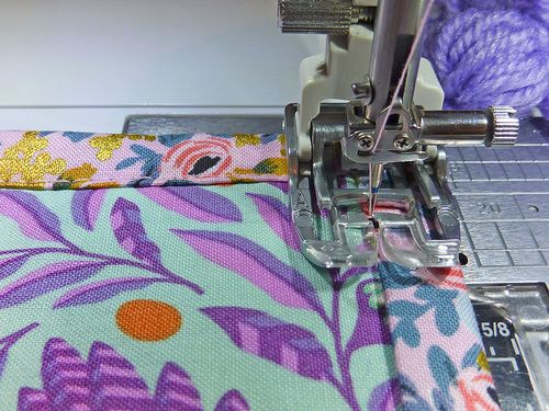 - We recommend using an Even Feed or Walking foot or engaging your machine’s built-in fabric feeding system. This is what we did; using the Janome AcuFeed™ Flex feeding system on our Skyline S7 throughout the remainder of the project.