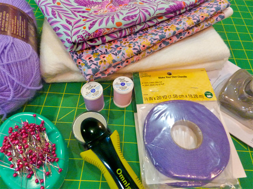 - 1¼ yards of 44″+ wide quilting weight cotton for the back/binding; we originally used Rosa in Violet from the Menagerie collection by Cotton + Steel