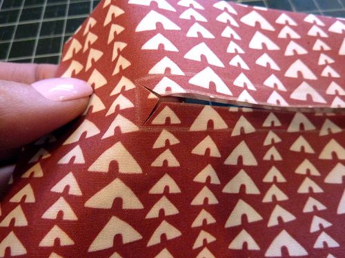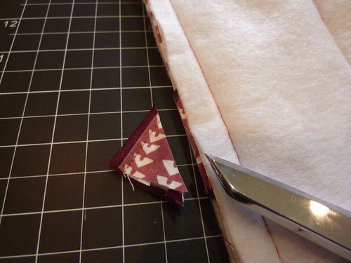 - As you did above with the strap tabs, trim away the excess “strap triangle” so the edges are flush.