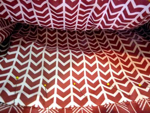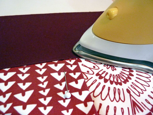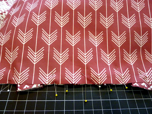 - Place the panels right sides together. Pin along both sides and across the bottom.