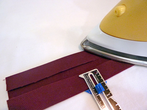 - Fold the interfaced strip in half and press. The long folded edges should be flush with one another and the ends of the now ¾” wide strip are raw.