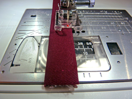 - Re-thread the machine if necessary with thread to best match the pocket fabric in the top and bobbin. Your stitch should still be lengthened.
