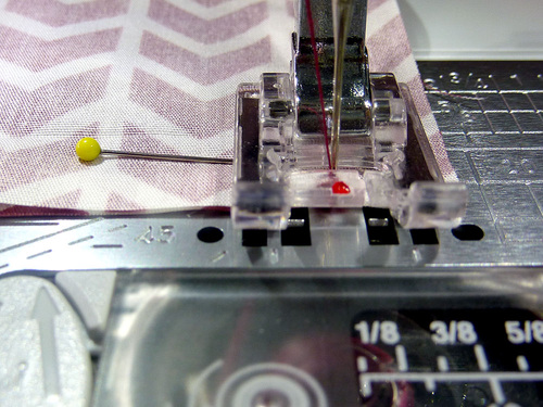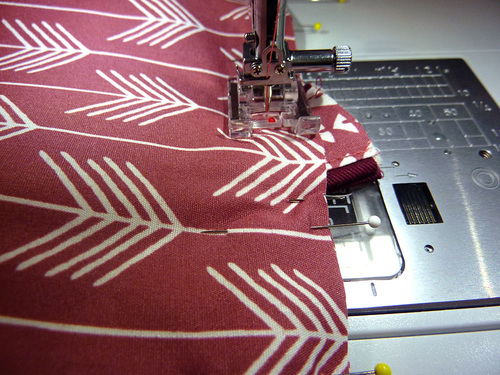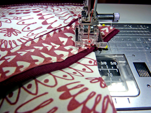 - Using a ½” seam allowance, stitch both sides and across the bottom, pivoting at the corners.