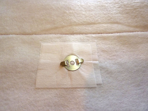 - Place the top curve of the magnetic purse snap at this marked point, and use the snap washer to mark two cut slits.