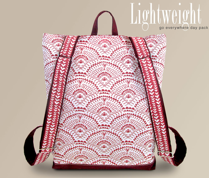 Our backpack has classic carryall styling: from the padded adjustable straps to the fold-over flap with a magnetic clasp to the fully-finished front zippered pocket. It’s a great day pack created in beautiful fabric: fashion meets function.