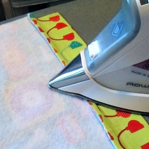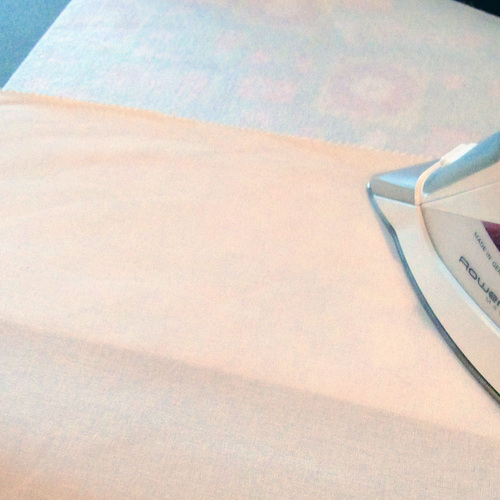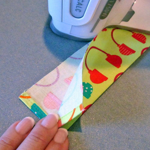 - Fold each hemmed strip in half lengthwise, wrong sides together, and press well.