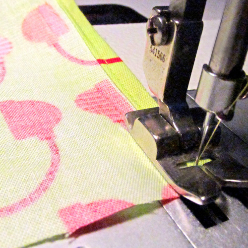 - Stitch all around the top edge, following right on top of the previously stitched casing seam.