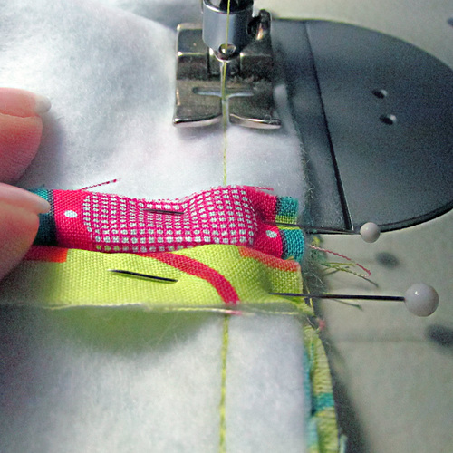 - Machine baste along the diagonal edge of each pair, staying very close to the cut edge.