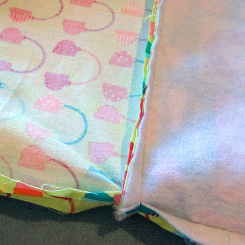 - Using a pressing cloth and following manufacturer’s instructions, fuse a fleece panel to the wrong side of each fabric panel. Make sure the edges of the fleece and fabric are flush on all sides of both pieces.