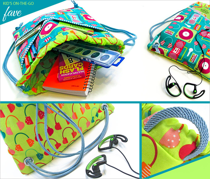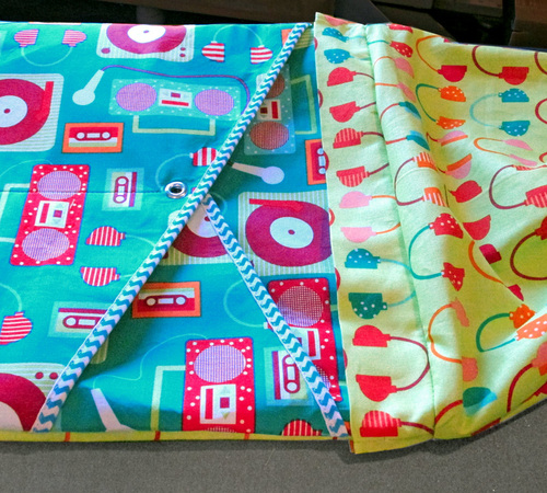 We originally used fabric from the Beatbox collection by Anne Kelle for Robert Kaufman Fabrics, an older collection that is no longer readily available. But the cool thing about working with quilting cotton: your selection of bright, fun, hobby-themed fabrics is endless… with new options coming out each season.