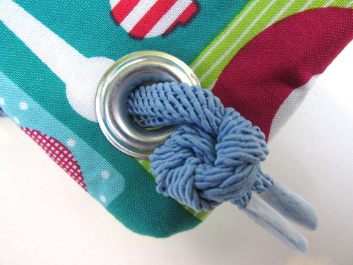 - Thread each pair of cording ends through its corner eyelet from back to front.
