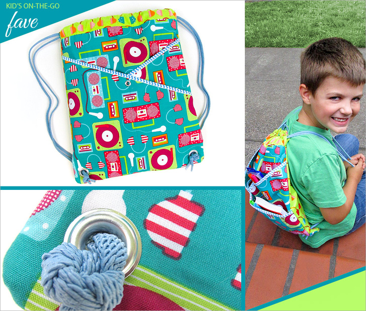 Our sample backpack is modeled by an energetic seven-year-old on his way to school, but the size and shape would work for any age. With punchy colors and bold designs, it’s a style that’s ready to hit the road.