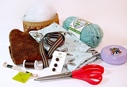 NOTE: We used natural for the nose/mouth. You may also prefer to embroider the eyes for children too young for button eyes. If so, black embroidery floss would be a good choice. - Knitting needle, chopstick or point turner
