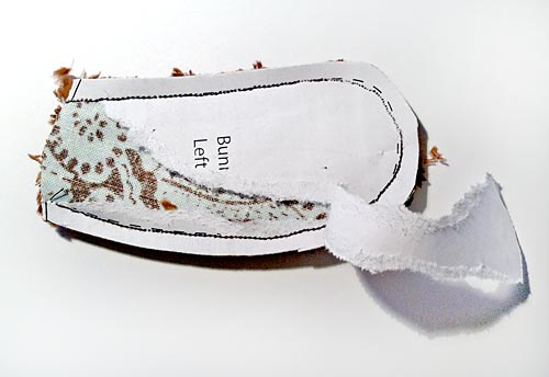 - Trim the fabric back to the cut line. Gently tear away the paper.