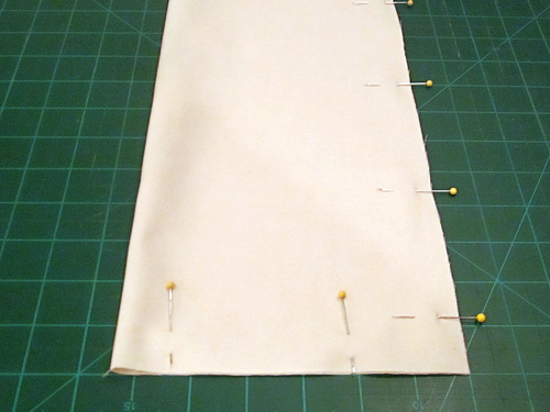 - Measure 3¾” to the right of the center line and trim vertically to create the right edge of the pocket. Then measure 3¾” to the left of the center line and trim vertically to create the left edge of the pocket.