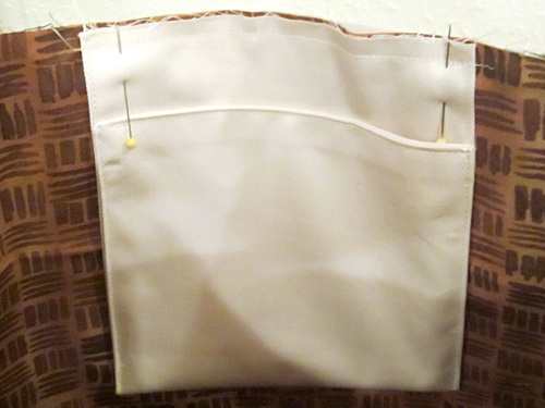 - Place the two main lining panels right sides together, sandwiching the pocket between the layers. Pin along each side.