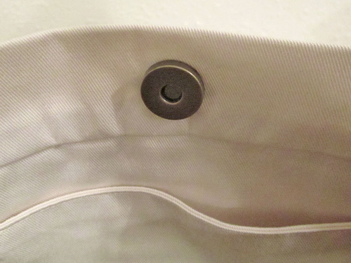 - Before stitching in place, you can insert a magnetic snap. This is optional, but is a nice finish for the top of the bag.