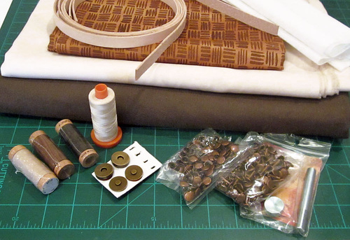 - ½ yard of 44”+ wide mid-weight cotton twill or similar in a solid dark color for the exterior; we originally used Ventana Twill by Robert Kaufman in Brown