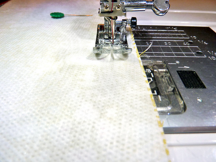 - Measure and mark lines to follow for the hand quilting stitches. You can mark with pins (our choice) or you can use a fabric pen or pencil to draw a line to follow. If you choose this route, just be sure the marking will easily wipe away or disappear with exposure to the air or the heat of an iron.