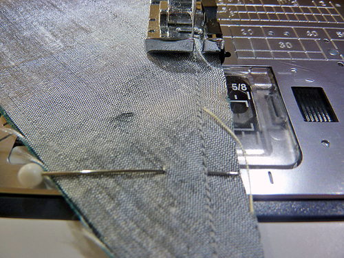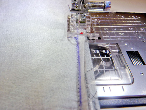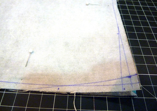 - You can trim away the excess fabric now or when your front-to-back seam is finished. We trimmed after drawing in the new lines, which was helpful since our edges will be piped.