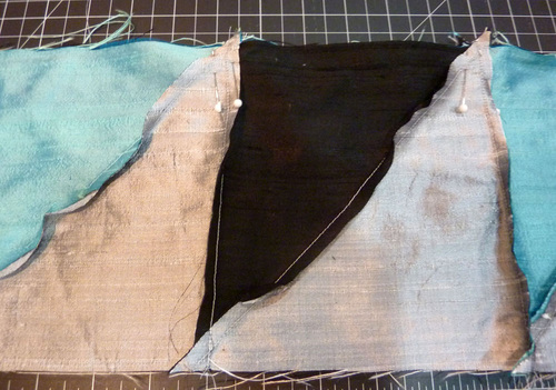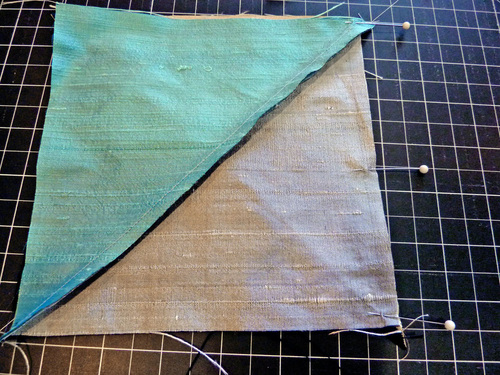 - We used ½ yard each of THREE colors of Silk Dupioni; we used Light Turquoise, Latte, and Black