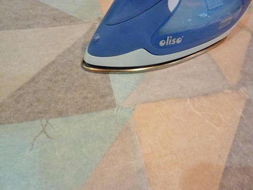 - As with all piecing, remember to press your seam allowances in opposite directions row to row so the points of the triangles will line up nicely on the front.