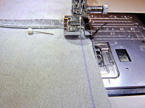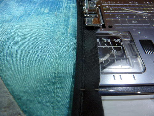 - Stitch in place, running your seam ¼” from the inside folded edge.
