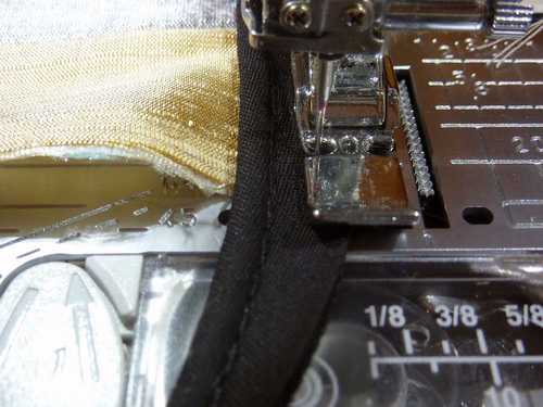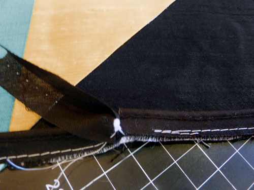 - Curve the piping around the square of the corner. You can clip into the insertion tape of the piping slightly to help it curve.