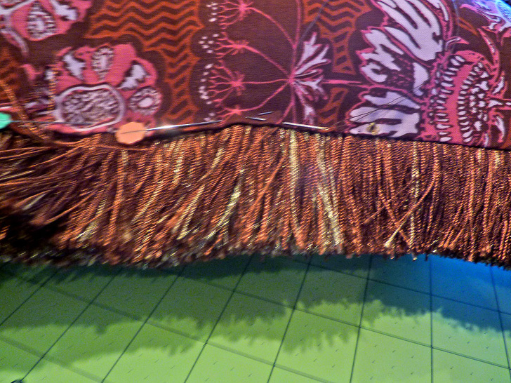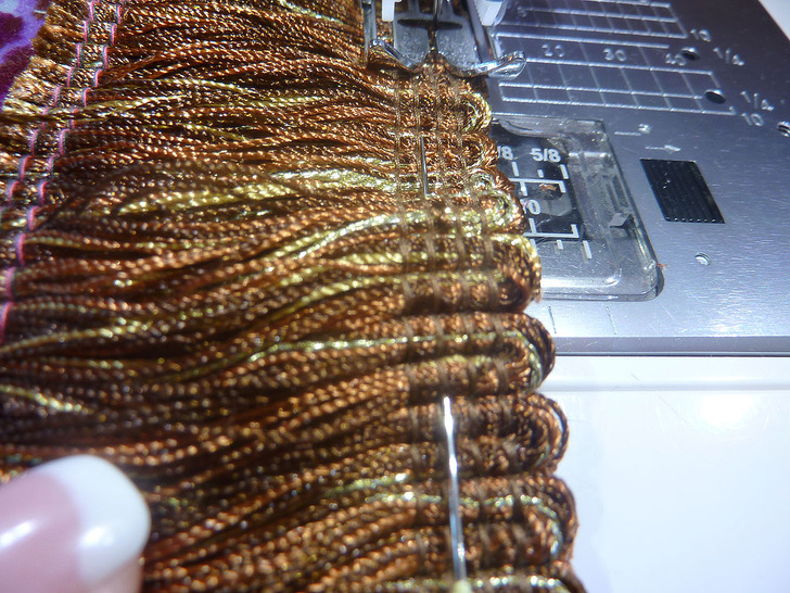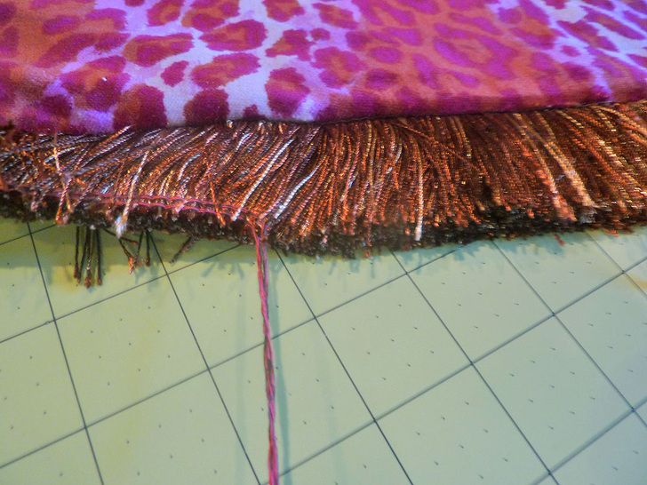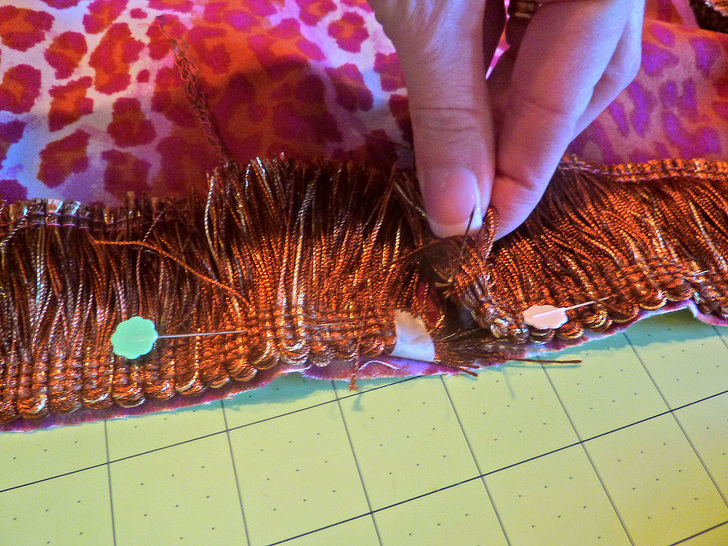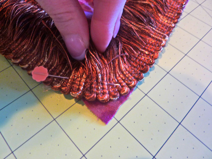 NOTE: The bottom edge of this type of fringe is usually sewn in place to hold the ends of the strands together. Do not remove this stitching yet; it’s easier to work with the fringe as a more solid unit during construction.