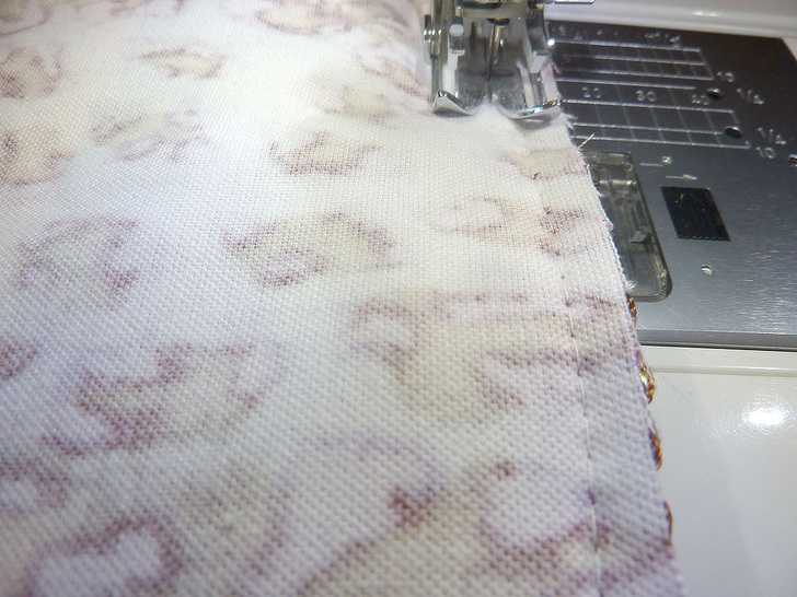 - Machine baste the fringe in place, staying within the ½” seam allowance. We used our Walking foot for this step.