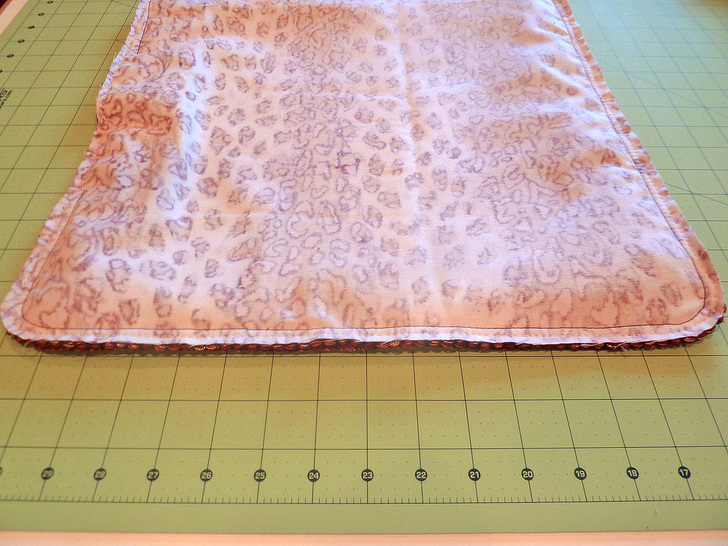 - Place the fringed panel right side up on your work surface. Smooth out the fringe to make sure none of the threads will be in the way of the final seam.