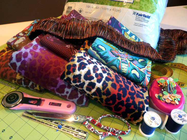 NOTE: If you make more than one pillow, consider keeping the fringe the same for each. This ties all the pillows together into a coordinated set. - One 16″ x 16″ pillow insert