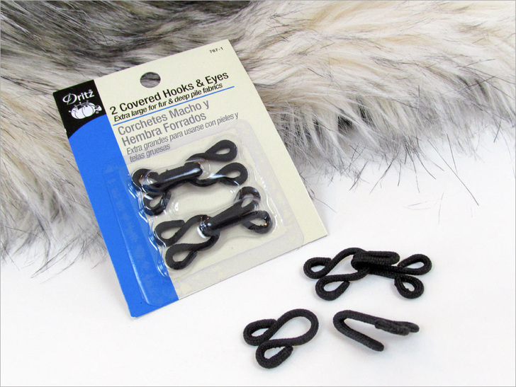 If you plan on keeping the collar on a particular coat at all times or are worried the suede isn’t going to grip as strongly you’d like, you can add cloth-covered hook and eye sets on the collar and coat. Dritz® makes a good option