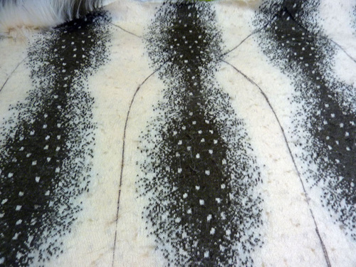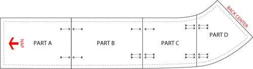 - To create each finished length (fur and suede), you need to stitch together each pair at the center back.