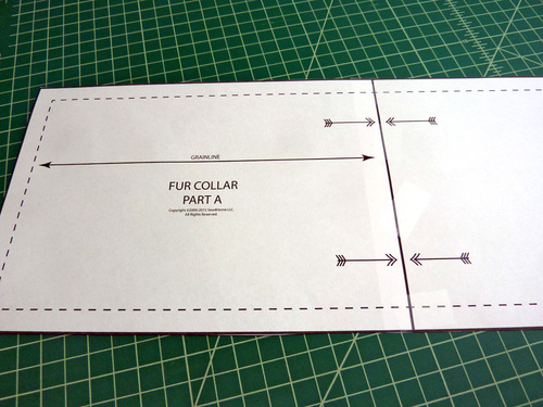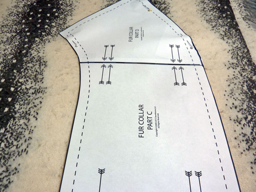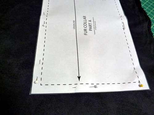 - Flip over the pattern so it is now wrong side up and position it to cut the second half of the collar. Make sure the nap is still running in the same direction as for the first half of the collar. If the two sides are going different directions, it will look very weird. Pin the pattern in place.