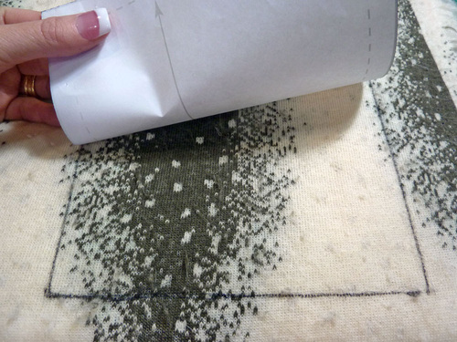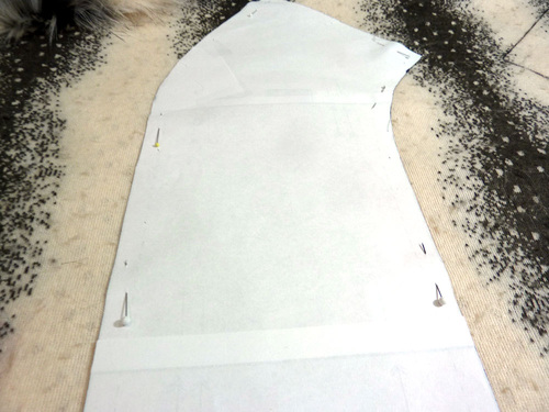 - Place the pattern on the wrong side of the fur. We positioned our pattern piece on our fur to take best advantage of the varying stripes of color. Pin the pattern piece in place.