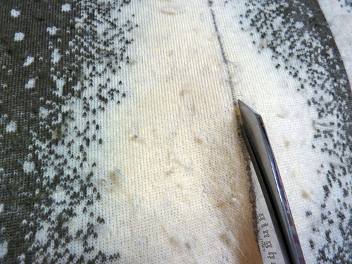 - When cutting, the idea is to cut only the backing and not the fur nap. Use just the tips of your scissors. With the wrong side facing up, slide the bottom blade of your scissors up next to the backing.