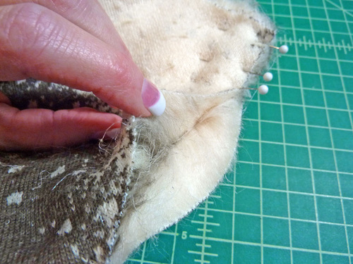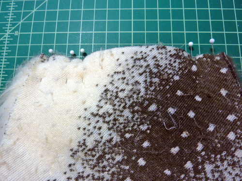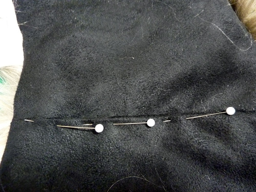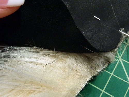 - When pinning faux fur, tuck the fur to the inside as you go so you are less likely to catch up the hairs in the seam.