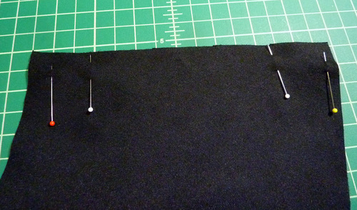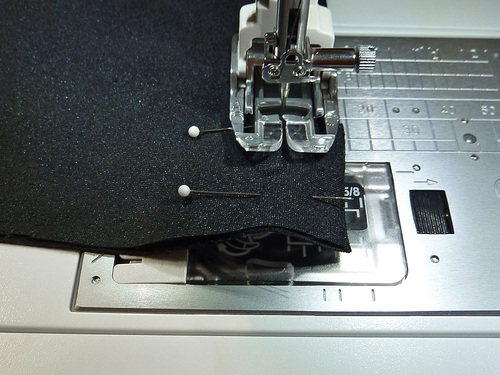 - Pin along the seam at a right angle, this will allow you to sew right up to the pin before pulling it out.