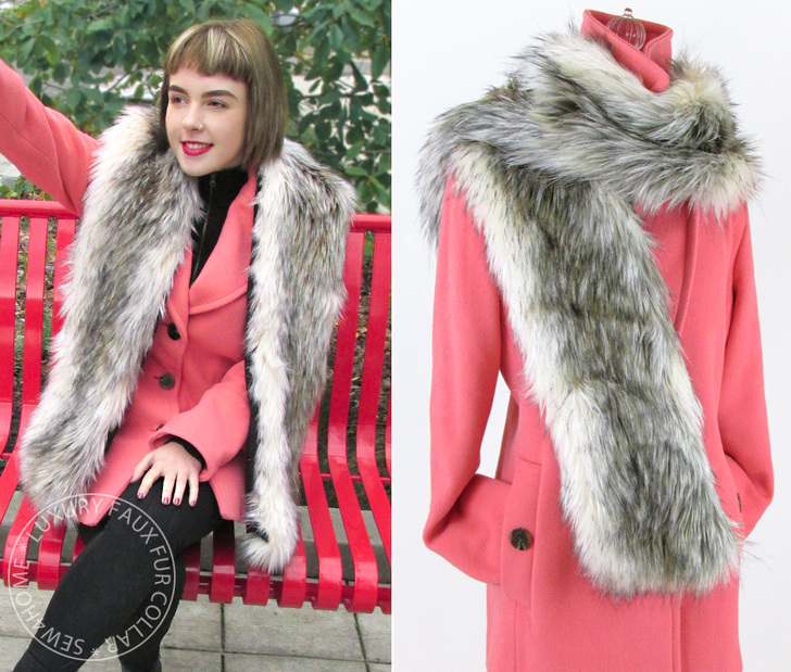 Fashion in a flash. Fur collars are a gorgeous way to update a winter coat, adding an instant overlay of luxury. Our fabric choices were inspired by the sumptuous faux fur selections you can now find online and in stores. We selected the look of natural fur, which has a beautiful depth of tone as well as a smooth and deep pile. But you could also walk on the whimsical side with varieties in fanciful colors, curly shags, and more.