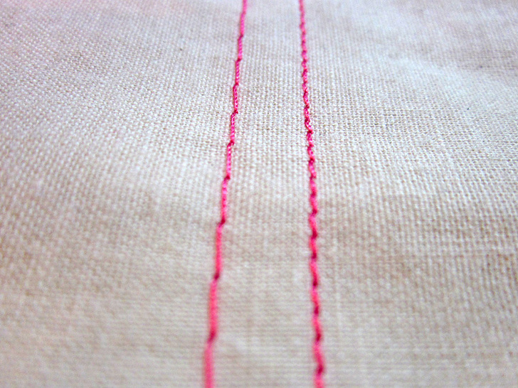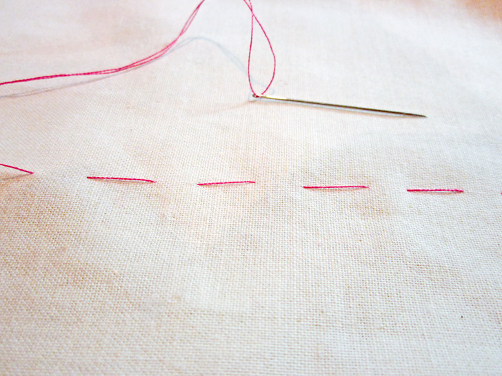 Basically, you use a basting stitch wherever and whenever you need to temporarily hold layers together. Depending on the type of item you’re sewing, basting stitches are sewn either at the exact seam allowance or just inside the seam allowance. Even though we’re always reminding you that we only use contrasting thread in our examples so you can clearly see the techniques, in this case, you actually want to use contrasting thread! Traditionally, all basting stitches are sewn in a contrasting thread so you can see them clearly to more easily remove them later.