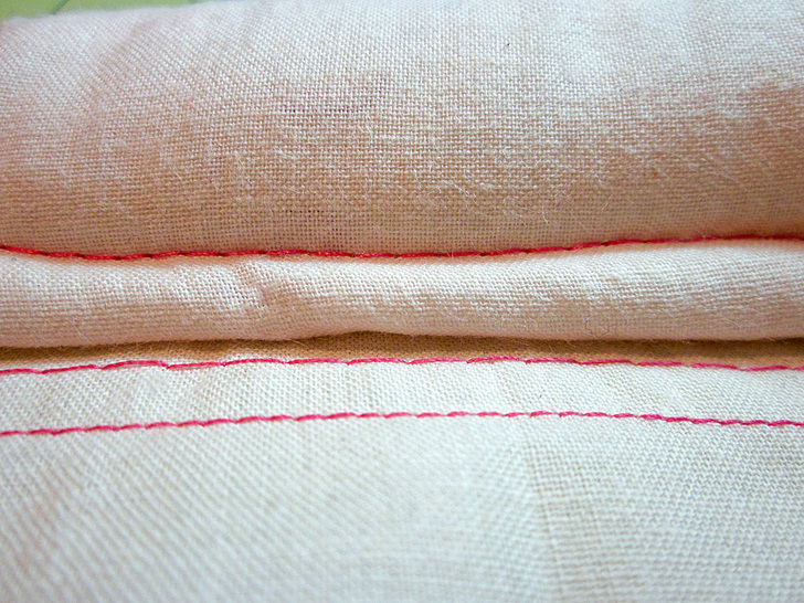 In garment sewing, a basting stitch is often used for fitting purposes. Whether you make a “muslin” (a prototype of the garment made from muslin fabric) first or cut the actual fabric first, it’s recommended you fit a garment before final sewing, especially if you’re not familiar with a pattern’s design/fit. Using a basting stitch makes the process quicker and easier. This is because the longer stitch sews more quickly and removes more easily. In this example, basting stitches sewn for fit should be sewn at the actual seam allowance in order to get the most exact measurements.