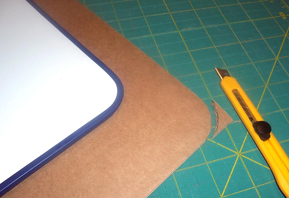 - Use the craft knife to round the corners of the foam board and cardboard to match the rounded corners of your dry erase board.