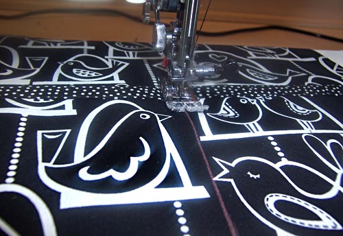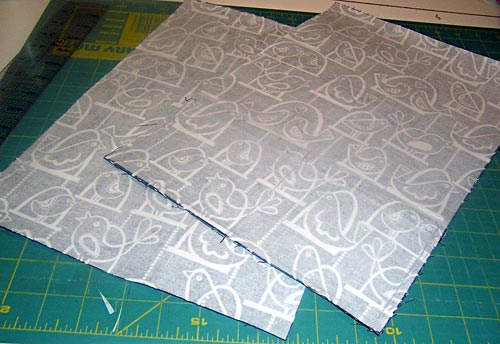 NOTE: If you choose a directional print as we did, make sure both pieces are running in the correct direction. - Machine baste the two pieces together ¼” along both sides and across the bottom.