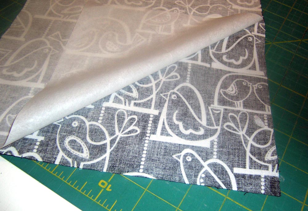 ONE 4½” x 10″ rectangle for the pocket - Using a cutting mat and rotary cutter, cut TWO 10″ x 15″ pieces of fusible web
