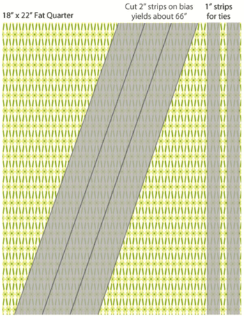 We chose fat quarters for our sample case, which was a fun way to get three perfectly coordinated fabrics. We show you how we effectively cut one fat quarter to yield both the wraparound ties as well as all the bias binding.