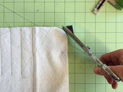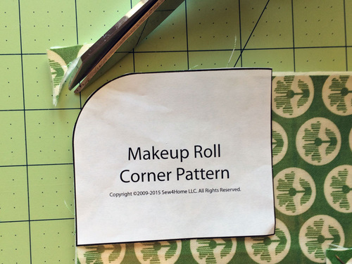 - Find the corner template. Pin the template at each corner and round, cutting through all the layers with your scissors.