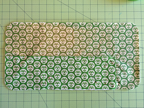 - Flip over the panel and round the corners of the zippered panel to match the base panel.
