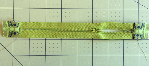- You should now have panels stitched in place on either side of the zipper; the excess width should be neatly filled in with the zipper tabs.