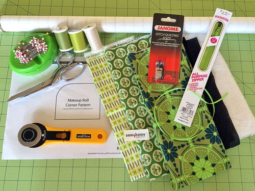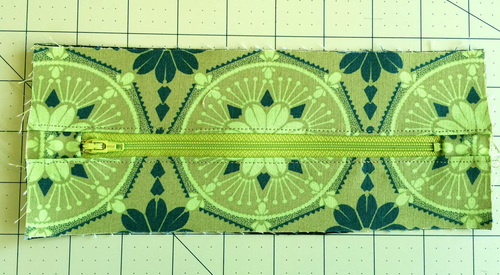 - ONE 7″ zipper to coordinate with fabric; we used a Coats All-Purpose Polyester Zipper in Kiwi